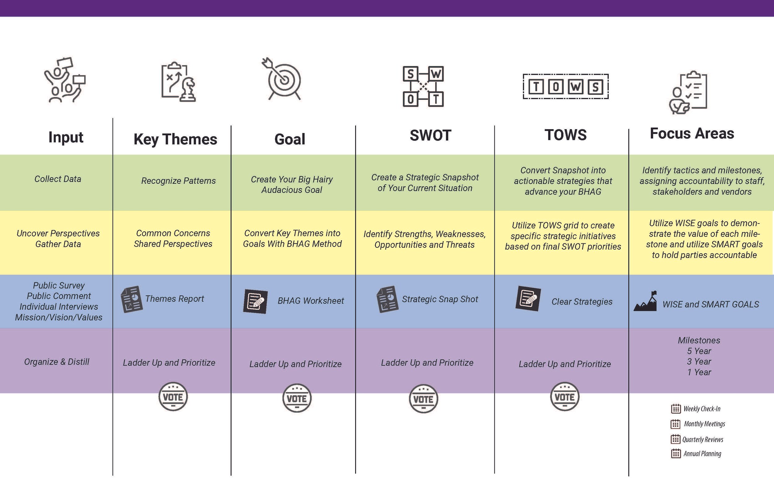 Provides an annual roadmap for Boards to gather meaningful input, measure technical performance and align the vision of the institutions future in a reliable, transparent and repeatable system.